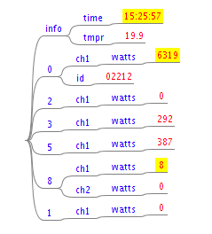 Here's a snapshot of the topic tree for the appliance power values. This is how much each of them is using at that moment.
